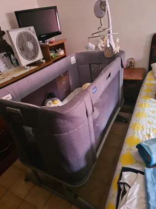 Culla next to me Chicco, ideale per i primi mesi del neonato. - Struttura in tessuto resistente. - Rete traspirante sui lati. Mai usata in quanto non piace a mia figlia.
