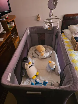 Culla colecho in colore grigio, ideale per tenere il bambino vicino durante la notte. È pieghevole e facile da trasportare. Caratteristiche: - Laterale ribaltabile. - Traspirante. - Per colecho. - Include borsa da trasporto e cinghie per fissare al letto.