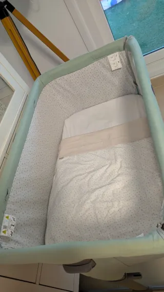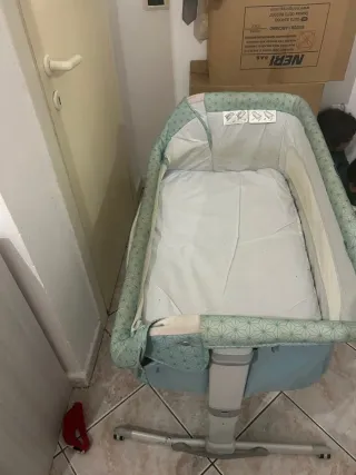 In colore verde menta acquistata alla fine del 2023, in perfette condizioni e conservata nella sua scatola originale. - Lati in rete traspirante. - Include materassino. - Molto leggera e facile da montare e smontare. Il rivestimento può essere smontato per il lavaggio. - Dotata di un semplice e sicuro sistema di ancoraggio al letto, che garantisce una perfetta aderenza grazie alle cinghie. - Ha 4 ruote con freno e piedi antiscivolo. Opzione di funzione dondolio. - Altezza regolabile per adattarsi all'altezza del letto. - Può essere posizionata in posizione semi-inclinata favorendo la digestione del bambino ed evitando rigurgiti.
