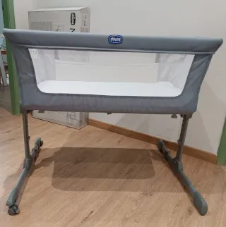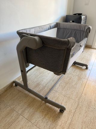Culla per culla Chicco Next2Me in colore grigio. Struttura metallica. Tessuto imbottito. Ruote per facilitare il movimento.