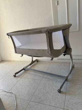 Minicuna a culla Jané Babyside, ideale per tenere il bambino vicino. In ottime condizioni. Include piumino, fodera e sottofondo. Inoltre, regalo tre proteggi-materasso e lenzuola aggiuntive. Non include cuscino né cuscino giallo della foto.