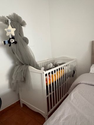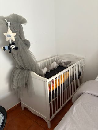 Culla bianca per neonati, pratica e sicura. Include: materasso, protezione, 3 lenzuola, cuscini anti-urto, borsa per pannolini, enredadera di cotone anti-urto, cuscinetto per neonato, sonaglietto. Disponibile a Nazaret-Valencia.
