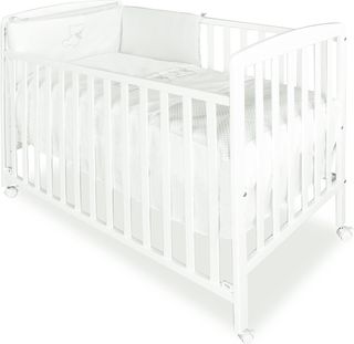 Culla bianca per neonato con un design moderno e decorata con stelle. - Dimensioni: 60 x 120 cm. - Struttura in legno bianco. - Ruote per facilitare il movimento.