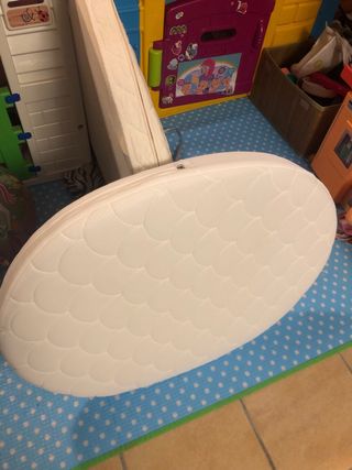 Materassino in schiuma per mini culla Stokke. Progettato per offrire comfort e supporto. - Tessuto bianco con motivo trapuntato. - Forma ovale. - Utilizzato pochissimo. Questo impeccabile materassino è nuovo in negozio a 139€. È nella sua confezione originale, come NUOVO.