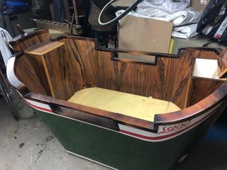 Culla a forma di barca, pezzo unico fatto artigianalmente con legno pregiato.