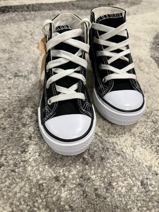 Scarpe Converse All Star alte per bambina, colore nero. - Chiusura con lacci bianchi. - Patch Hi Sofia e disegno sul lato. - Suola bianca in gomma.