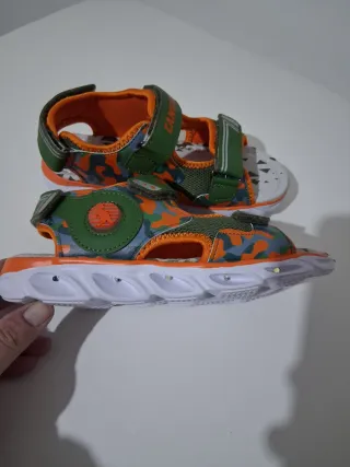 Sandali bambino Canguro verdi e arancioni con LED