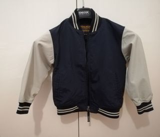 Caldo giubbotto invernale per bambino, con cappuccio e chiusura a zip. - Patch logo Geox sul petto. - Inserti a contrasto grigi e blu. - Polsini e fondo a costine Taglia 8 anni , cm .128 Si possono togliere le maniche e diventa uno smanicato