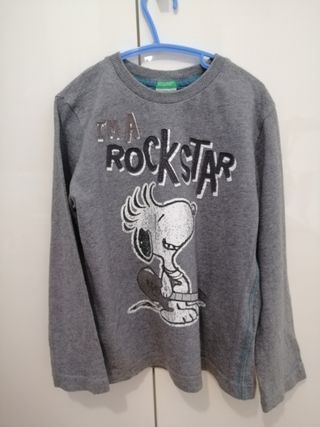 MAGLIETTA LEGGERA ,STAMPA SNOOPY, TAGLIA 5/6 ANNI, COTONE, MARCA UNITED COLORS BENETTON.