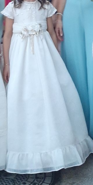Scatola o polsino per vestitini da comunione. Morbido tessuto bianco. Misura: altezza 100 - Chiusura con coulisse regolabile. - Materiale in tessuto resistente