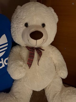 Questo adorabile orso di peluche bianco è perfetto per abbracciare. È in buone condizioni e pronto per trovare una nuova casa. Morbido e soffice, di colore bianco, con fiocco a quadri sul collo.