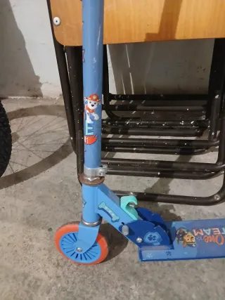Monopattino giocattolo con design Paw Patrol. Colore blu con dettagli in arancione e turchese. Ruote arancione. Manubrio regolabile.
