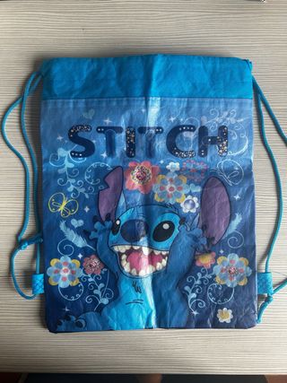 Zaino sacca con stampa di Lilo & Stitch. Molto bella e pratica, comoda per bambini e bambine. Disegno simpatico di stich Ottima idea regalo per bambini e bambine - Personaggio Stitch. - Motivo floreale e farfalle. - Colore blu.