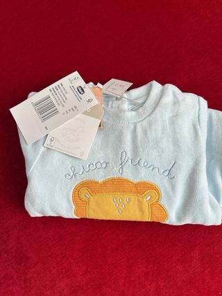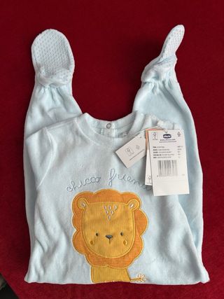 Pigiamone per neonato del marchio Chicco, con un simpatico disegno di un leone. - Colore azzurro. - Tessuto morbido. - Scritta chicco friend ricamata.