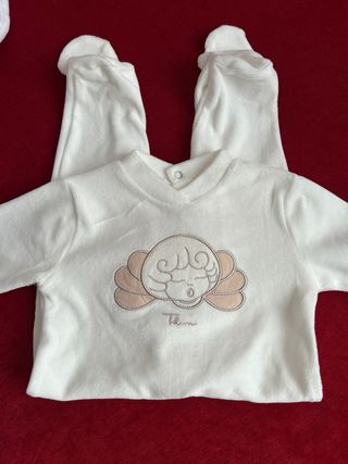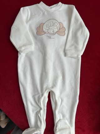 Pigiamone in ciniglia per neonato con simpatico disegno Thun. - Morbido tessuto. - Design con angelo. - Chiusura con bottoni.
