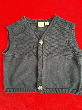 Gilet blu per neonato, perfetto per i primi mesi. - Chiusura con bottoni. - Scollo a V. - Tessuto a maglia. - Dettaglio ricamato sul fondo.