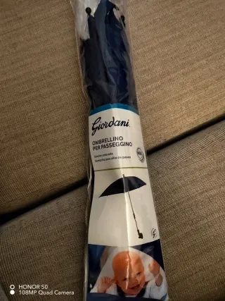 Ombrellino Giordani per passeggino, ideale per proteggere il tuo bambino dal sole. - Colore blu scuro. - Design compatto e facile da trasportare. - Marchio Giordani.