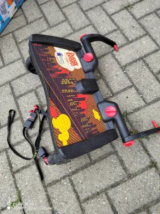 Pedana per passeggino Lascal, modello Buggy Board Maxi. - Colore nero con grafiche colorate. - Ruota singola posteriore. - Cinghie di fissaggio incluse.