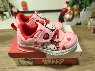 Scarpe da bambina rosa con personaggio Hello Kitty e dettagli a cuore. - Chiusura con velcro. - Suola con luci. - Taglia 28.