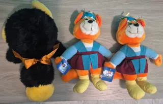 Set di due peluche Cristoforo Colombo una papera. Sono morbidi e colorati. - Peluche con etichetta originale. - Personaggi con vestiti blu e bordeaux. - Piedi gialli.