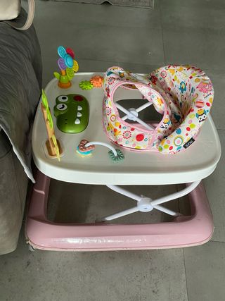 Tacatá per neonati in colore rosa, ideale per i primi passi. - Vassoio superiore con giocattoli interattivi. - Sedile imbottito. - Struttura resistente e sicura. - Include la sua scatola.
