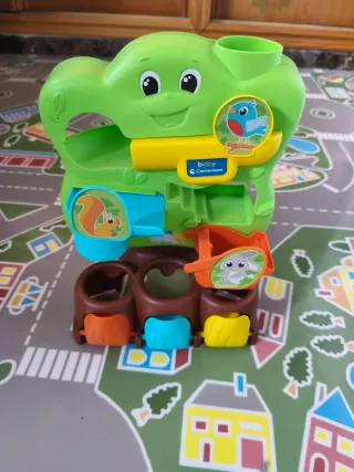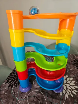 Set di tre giocattoli per bambini. - Pista con rampe colorate e palline. - Casa della fattoria interattiva con animali e tastiera. - Giocattolo di elefante con anelli. Si vendono anche separatamente.