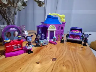 Set di giocattoli di Vampirina. Include figure dei personaggi, accessori tematici Vampirina - Set Amici Glowtastici, casa dei giochi Vampirina, auto Vampirina, cucina giocattolo Vampirina.