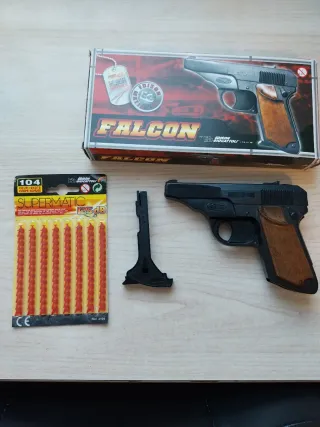 Pistola giocattolo modello Falcon di Edison Giocattoli. Include scatola originale e fulminanti. - Pistola giocattolo Falcon. - Prodotto da Edison Giocattoli. - Include scatola originale. - Fornita con strisce di fulminanti.