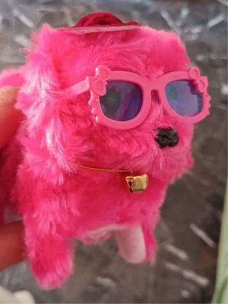 Simpatico peluche rosa per bambina, morbido e colorato. - Dettagli con fiocchi sugli occhiali. - Collare con campanellino. - Cappellino decorativo.