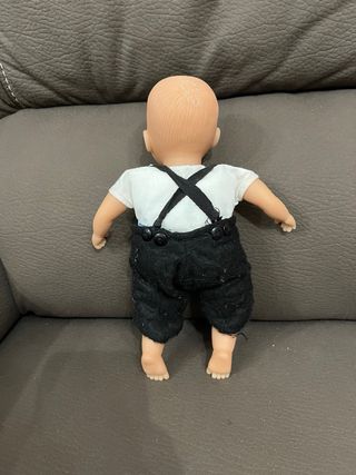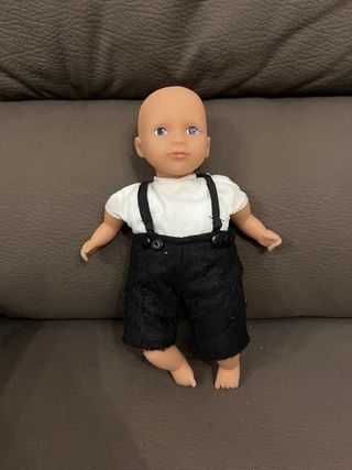 Bambola Chicco in ottime condizioni. Perfetta per collezionisti da pulire bene - Vestito con salopette nera e camicia bianca. - Capelli biondi e occhi azzurri. - Materiale in plastica.