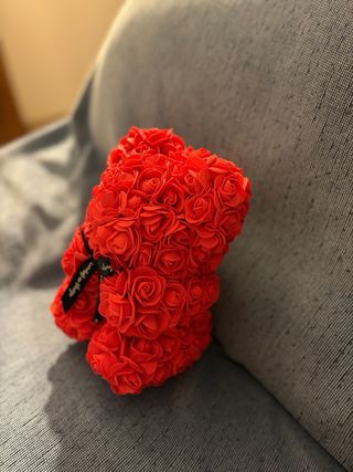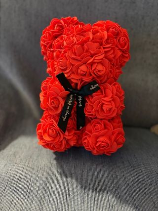 Orsacchiotto decorativo realizzato con rose finte rosse. - Dettagli floreali. - Nastro decorativo con scritta always and forever.