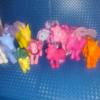 Lotto composto da 10 pony fake non originali my Little pony. Cavalli di varie dimensioni, colori, pegaso e unicorni. Alcuni in stato buono, altro più discreto. Uno piccolo giallo rotto sul muso.