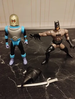 Lotto di action figure DC Comics con i personaggi di Batman e Mr. Freeze. Kenner anni 90 - Action figure di Batman con arma e giubbotto - Action figure di Mr. Freeze. - Accessori inclusi.