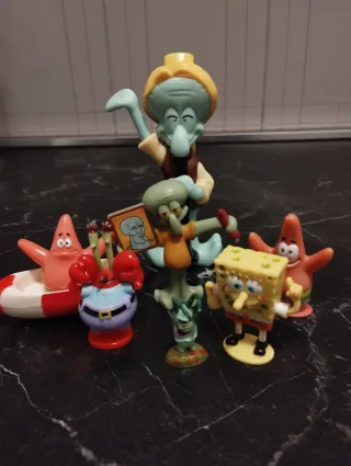 Lotto di personaggi della serie animata Spongebob Squarepants. - Include personaggi iconici come Spongebob, Patrick, Mr. Krabs, Squidward e Plankton. - Realizzati in plastica. - Ideali per collezionisti e fan della serie.