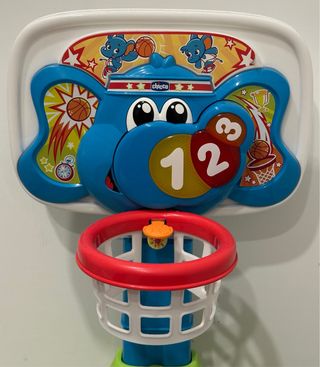 Gioco da basket Chicco con simpatico design a elefante, ideale per i più piccoli. - Tabellone colorato con grafica a tema. - Canestro rosso con retina bianca. - Numeri 1, 2, 3 visibili sul tabellone.