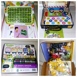 Set di giochi educativi per bambini. - Gioco Clementoni con labirinto e strumenti musicali. - Gioco Lisciani Il Trenino dei Giochi con lettere e numeri. - Gioco Lisciani Gatto Capra con carte e trenino. - Set di pezzi per costruire macchinine. Tanti aktri