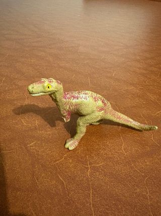 Action figure di un dinosauro Velociraptor. - Dettagli realistici. - Colore giallo con striature rosse. Zampa danneggiata
