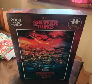 Puzzle da 2000 pezzi a tema Stranger Things di Netflix. Un'immagine dettagliata della città di Hawkins e del mondo capovolto. - 2000 pezzi - Licenza ufficiale Netflix - Realizzato con carta riciclataPuzzle 2000 pezzi Netflix Stranger Things originale ufficiale blu rosso gioco tavolo società sfida intelligenza logica concentrazione relax tempo libero hobby creativo montaggio incastro perfetto cartone riciclato alta qualità stampa definizione colori vivaci brillanti immagine iconica Eleven Undici sottosopra upside down Demogorgone Hawkins Hellfire Club Dustin Mike Lucas Will Max Eddie Munson anni ottanta vintage retrò collezione limi
