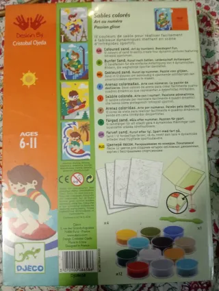 Kit creativo Djeco Sables Colorés per realizzare quadri realistici e colorati. Nuovo sigillato - Kit Arte con numeri. - Include colori. - Design di Cristobal Ojeda.