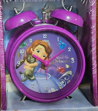 Sveglia da tavolo a tema Principessa Sofia Disney. Perfetta per la cameretta dei più piccoli. Prezzo trattabile. - Quadrante con numeri ben visibili. - Struttura in plastica viola.