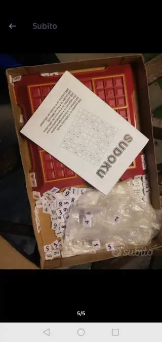 Divertente gioco da tavolo ispirato al Sudoku, ideale per allenare la mente da soli o in compagnia! Include tutte le tessere originali, perfette per ricreare partite di Sudoku a casa, senza bisogno di carta o penna. 📦 Contenuto: ·Plancia di gioco ·Tutte le tessere numerate ·Istruzioni incluse 🧠 Adatto per tutte le età, perfetto per amanti dei giochi di logica e puzzle. Ottime condizioni, completo e pronto per giocare! Altri giochi disponibili: https://it.wallapop.com/item/set-4-giochi-per-ragazzi-quercetti-lisciani-cle-1204855061 📍 Consegna a mano in zona Porta di Roma o spedizione. 💬 Scrivimi per ulteriori informazi
