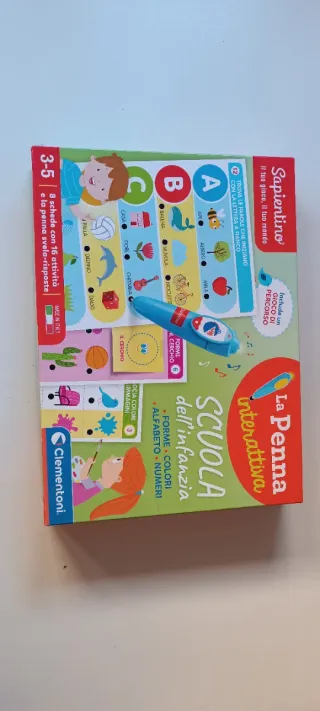 Gioco educativo Sapientino Clementoni per la scuola dell'infanzia. - Include 8 schede con 16 attività. - La penna interattiva svela le risposte. - Età consigliata: 3-5 anni. - Include un gioco di percorso. - Made in Italy.