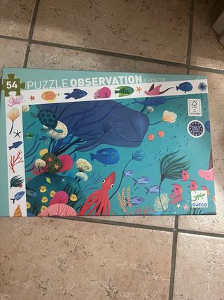 Puzzle Djeco con 54 pezzi raffigurante un mondo sottomarino colorato. - Illustrazione di creature marine e coralli. - Include un poster. - Made in Europe.