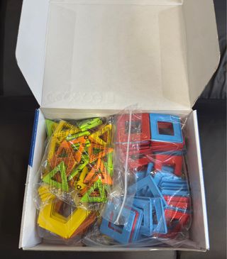 Gioco educativo, costruzioni magnetico. Numero di pezzi 388 • La scatola contiene 96 sfere metalliche, 144 barrette magnetiche verde chiaro, rosso, arancione, azzurro, 72 pannelli triangolari verde chiaro, giallo e arancione, 52 pannelli quadrati rosso e azzurro, 24 pannelli Gioco per bambini da 3 anni in su. Nuovo. Mai aperto. Nuovo su Amazon costa 250 € lo lo vendo a 150€.
