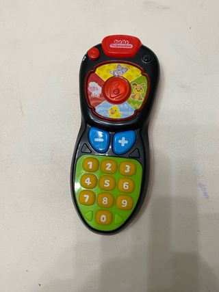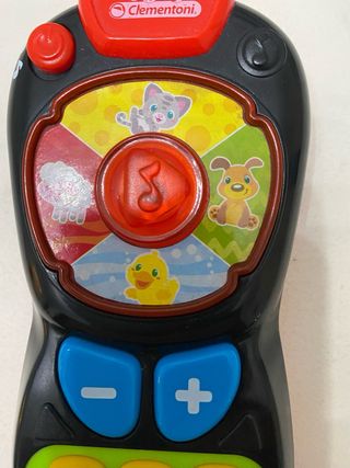 Telecomando giocattolo Clementoni per bambini. - Design colorato e divertente. - Pulsanti con numeri e simboli. - Immagini di animali e note musicali. con due batterie nuove, appena messe