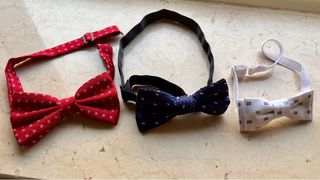 Set di tre papillon per bambino. - Papillon rosso con pois bianchi. - Papillon blu scuro con pois rosa. - Papillon bianco con quadretti blu e verdi. ACQUISTA 3 PRODOTTI TRA I MIEI ANNUNCI E IL MENO CARO É IN REGALO!! L’offerta valida solo su abbigliamento, giochi e accessori per i Bambini/ne (annunci con la scritta Prendi 3 Paghi 2 e/o Promo 3x2)
