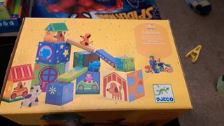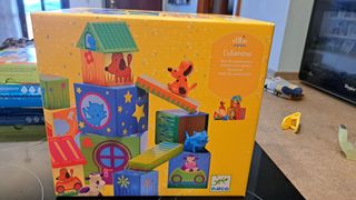 Gioco firmato, con 3 animali in gomma, serie di cubi per creare una torre o una casa, e inventare storie. Come nuovo!!!