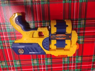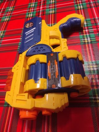 Pistola con doppio caricatore,2 da 6, e alloggiamento per sparare dischetti . Proiettili non compresi e da comprare a parte.