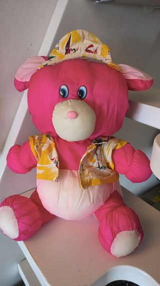 Pupazzo Orsacchiotto Hawaiano Rosa con Giacca e cappello Hawaii 35x25x15 Vintage Da lavare