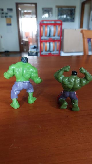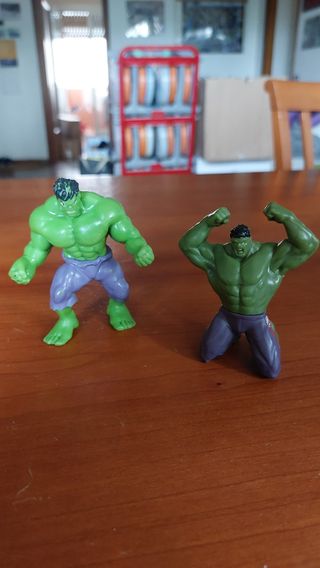 5 giocattoli statuine Marvel: 2 Hulk, uno Spider-Man, un Thor e un Captain America.